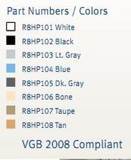 Trademarked VGB compliance button easily identifies VGB 2008 compliant cover from on deck and underwater